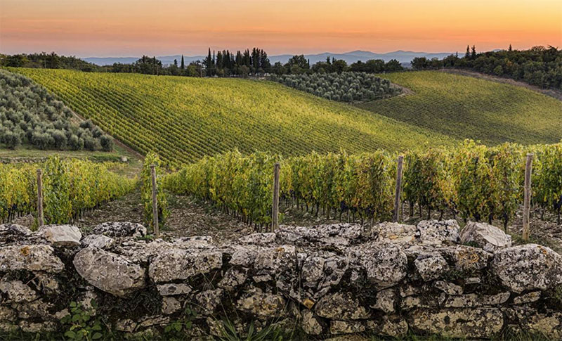 Over the decades, the estate expanded: from the original approximately136 acres [55 hectares]. Today there are about 185 acres [75 hectares] of vineyards, plus olive groves and estate buildings.